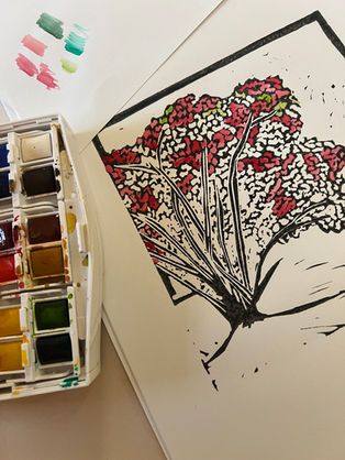 Each of us played with printmaking including soft carve Lino and gel plate.